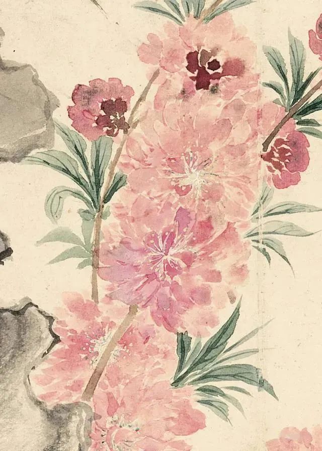 深宵欹风并露开,一枝千花报春心 典型的“恽体”绘法,桃杆、桃花皆为没骨法,皆备无须墨线勾画,以色线勾画叶茎即可。粉色的桃花,嫩绿的桃叶,处处懒散着春的气味。 澳门皇冠电影欧博手机版 细节 ????